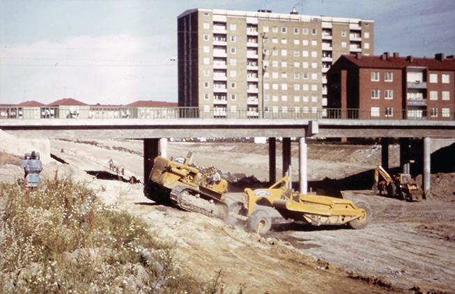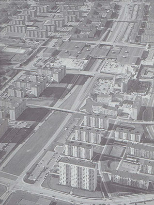 Photo of Rosengård in 1975 with its time-typical urban design.