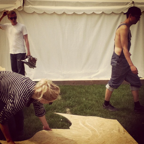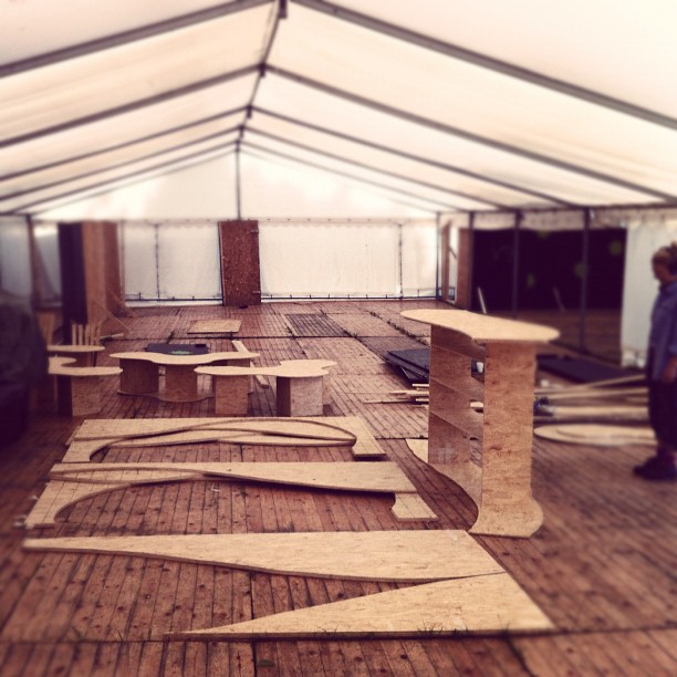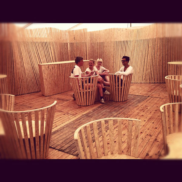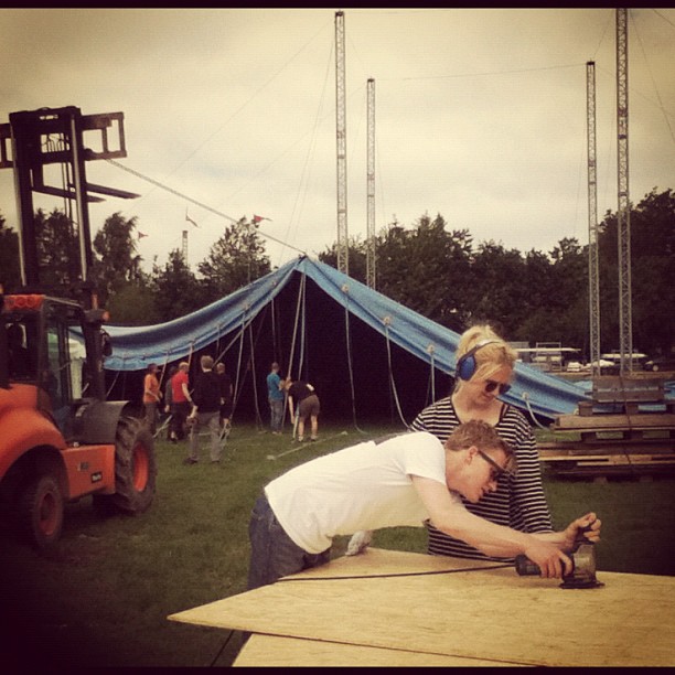 Together with fellow students Pia Dyrendahl Staven, Even Brænne Olstad and Nicolai Vittrup, we designed and built Danish Independent Label's lounge area in Roskilde Music Festival, 2012. Using only OSB (Oriented strand board) and screws, we built it all up in one week, just in time before the festival goers entered the site.