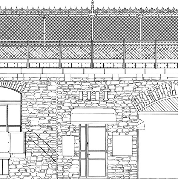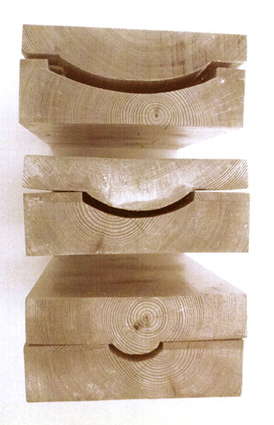 Hand carved casting models in pine wood inspired by the Monier vaults in the existing building.